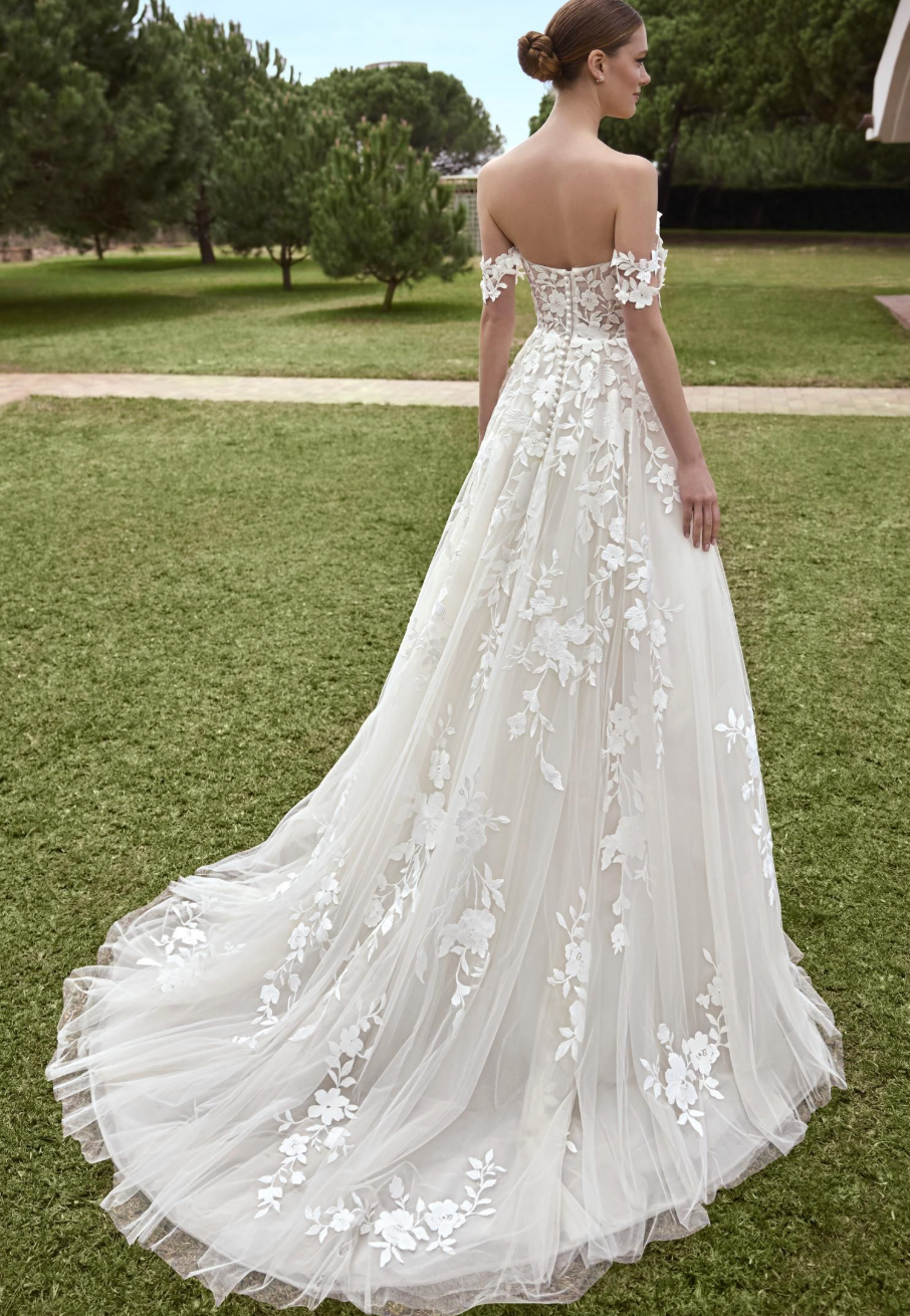 *Happiness Guarantee, terms + conditions: intent to exchange expressed within 24 hours from the time of pick up, gown to be picked up within seven days of purchase. The exchange must be equal or greater in value. One-time exchange for a different sample sale dress. Credit can be applied to any special order wedding dress. Credit must be used within 6 months from purchased.
